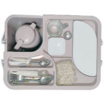 » سایر اقلام یک عدد: درب بطری بازکن – قندان – جاشکری – نمکپاش – ظرف میوه درب دار – دستمال – درب جداشونده که کاربرد سینی دارد – سبد ابکشی – فلاسک احمد – لیوان دسته دار شیشه ای